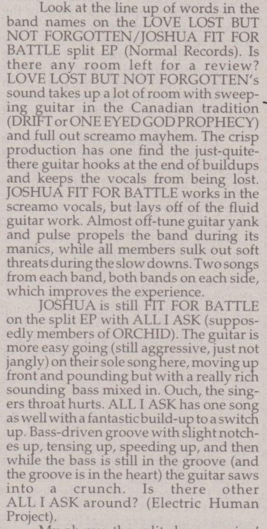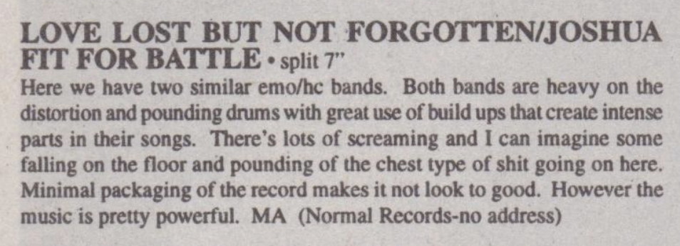 - Love Lost But Not Forgotten split 7" (Normal Records 1999)