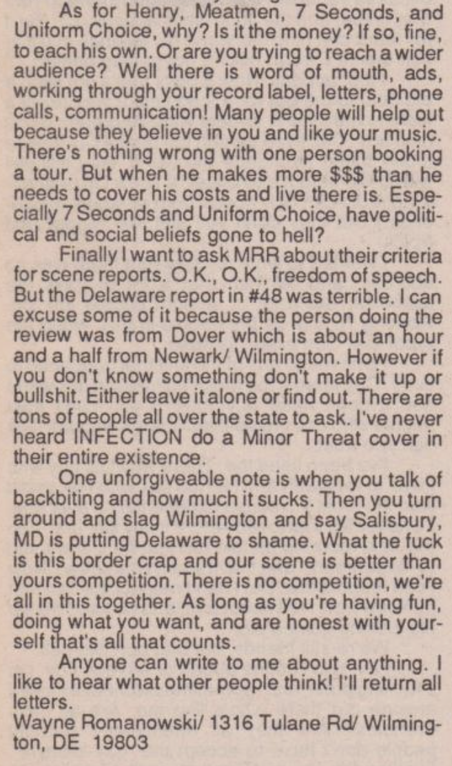 Scene report in Maximum Rocknroll 074 (1989 July) by Wayne Romanowski