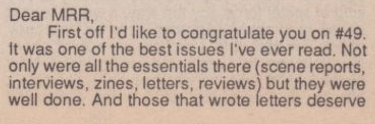 Scene report in Maximum Rocknroll 050 (1987 July)